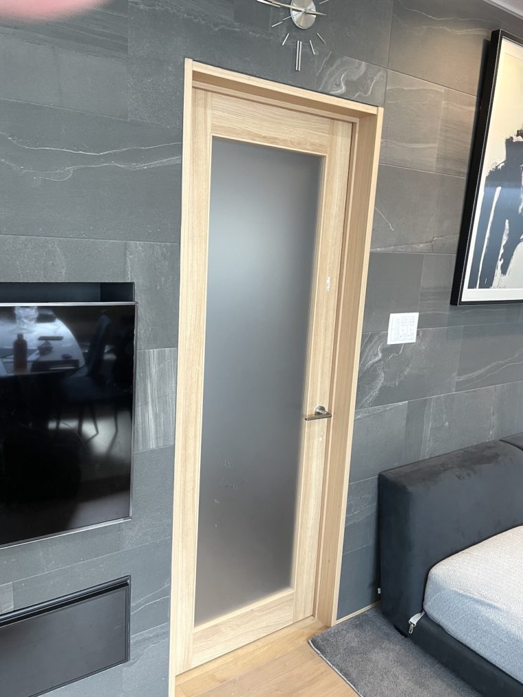 木目調のものから、シティホテル風のガラスドアへ交換。
